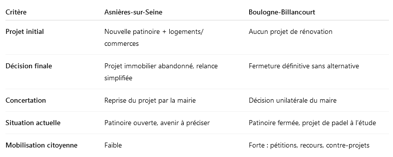 À quelques stations de métro l’une de l’autre, Asnières-sur-Seine et Boulogne-Billancourt offrent aujourd’hui un contraste saisissant. L’une révise, de manière justifiée, ses ambitions pour maintenir une patinoire en activité. L’autre a tout fermé sans justification crédible. Et si la glace était révélateur… d’une certaine idée de l’intérêt général ?