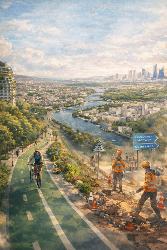 Entre Boulogne-Billancourt et Suresnes, les bords de Seine s’apprêtent à changer de visage. Avec son programme « Cœur & Seine », le département des Hauts-de-Seine lance douze chantiers d’ici 2030 pour moderniser les infrastructures, apaiser la circulation et verdir les quais. Derrière ce projet d’ampleur, c’est tout un équilibre entre voiture, mobilités douces et cadre de vie qui se redessine.